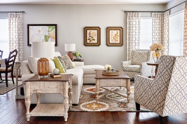 Она органично ложится на разные элементы дома, если продумать мотив и цветовую палитру под общую картинку комнаты. Чаще всего оживляют текстиль и акцентные детали: