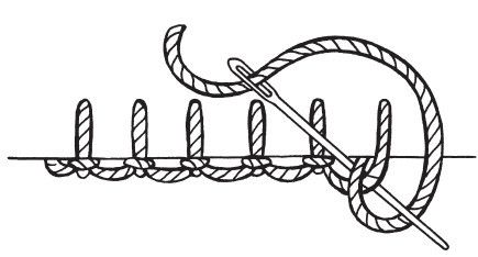 При выполнении шва петли фиксировать на стежке основы, но не на ткани. Иголку с рабочей ниткой обязательно продергивать на изнаночную сторону рукоделия в начале и в конце ряда для закрепления шва (рис. 7).
